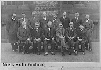 Category: Conferences Person(s): (first row) Lodge, O.J.; Langevin, Paul; McLennan, J.O.; Bohr, N.; Aston, Francis William; Ehrenfest, Paul; (second row) Lindemann, F.A.; Coster, Dirk; Darwin, Charles Galton; Glazebrook, R.T.; Wood, R.W.; Fowler, Ralph Howard; Kramers, Hendrik Anton; Rankine, A.O. Date: 1923 Place: Liverpool Occasion/Description: British Association meeting. |
