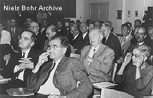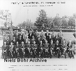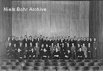 Category: Conferences, DK Person(s): (first row) Pais, Abraham; Bloch, Felix; Hund, Friedrich; Houston, William Vermillion; Møller, Christian; Dennison, David Mathias; Rabi, Isidor Isaac; Weisskopf, Victor Frederick; Bohr, Aage; Dirac, Paul Adrian Maurice; Frisch, Otto Robert; Klein, Oskar Benjamin; Heisenberg, Werner Karl; Blackett, Patrick Maynard Stuart; Courant, Richard; Rubinowicz, Adelbert Wojciech; (second row) Jordan, Ernst Pascual; Holtsmark, Johan Peter; Gustafson, Torsten; Strømgren, Bengt; Werner, Sven; Wick, Giancarlo; Mottelson, Ben; Thomas, Llewellyn Hilleth; Goudsmit, Samuel Abraham; Manneback, Charles; Wergeland, Harald Nicolai; Mercier, André P.H.; Rosenfeld, Léon; Beck, Guido; Veje (student) (third row) Holm; Bøggild, Jørgen Kruse; Jørgensen; Koch, Jørgen; Kistemaker, J.; Nordheim, Lothar Wolfgang; Kristensen, P.; Kronig, Ralph de Laer; Hoyt, Frank Clark; Nielsen, Harald Herborg; Weizsäcker, Carl Friedrich von; Wheeler, John Archibald; Lassen, Niels Ove; Svartholm; (fourth row) Nilsson; Nielsen, Ole Bent; Lauritsen; Levi, Hilde; Ariyama, Kanetaka; Trumpy, Bjørn; Rozental, Stefan; Jacobsen; Madsen, C.B.; Plesset, Milton Spinoza; Jessen, Børge; Deser, S.; Huus, Torben; (fifth row) Tangen, Roald; Madsen, Børge; Olesen; Høffer-Jensen, Svend; Petersen, Aage; Elbek; Delbrück, Max; Casimir, Hendrik Brugt Gerhard; Nielsen, Jens Rud; Hulthén, Lamek; Højgaard-Jensen, H.; Lindhard, Jens; Kofoed-Hansen, Otto; Pihl, Mogens; Roy-Poulsen, N.O. (sixth row) Winther, Aage, Brostrøm, K.J.; Jost, Res; Luttinger Date: 1963 Place: NBI, Copenhagen Occasion/Description: Commemoration Meeting for Niels Bohr. |