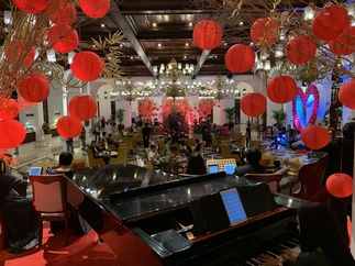The mood rose with some food, and also when Troels returned from an expedition with a bamboo bike that we could use for transportation. Off we went to see the local fort and cathedral along with lots of cats, dogs, and chickens roaming the streets. However, in the end, one of us got "slummofobia", and we therefore changed to another (more wealthy) approach. Thus, dinner was consumed at the fasionable old colonial Hotel Manila to the sound of a live band playing classical music in a huge hall, which was quite the contrast to the day in the streets.
