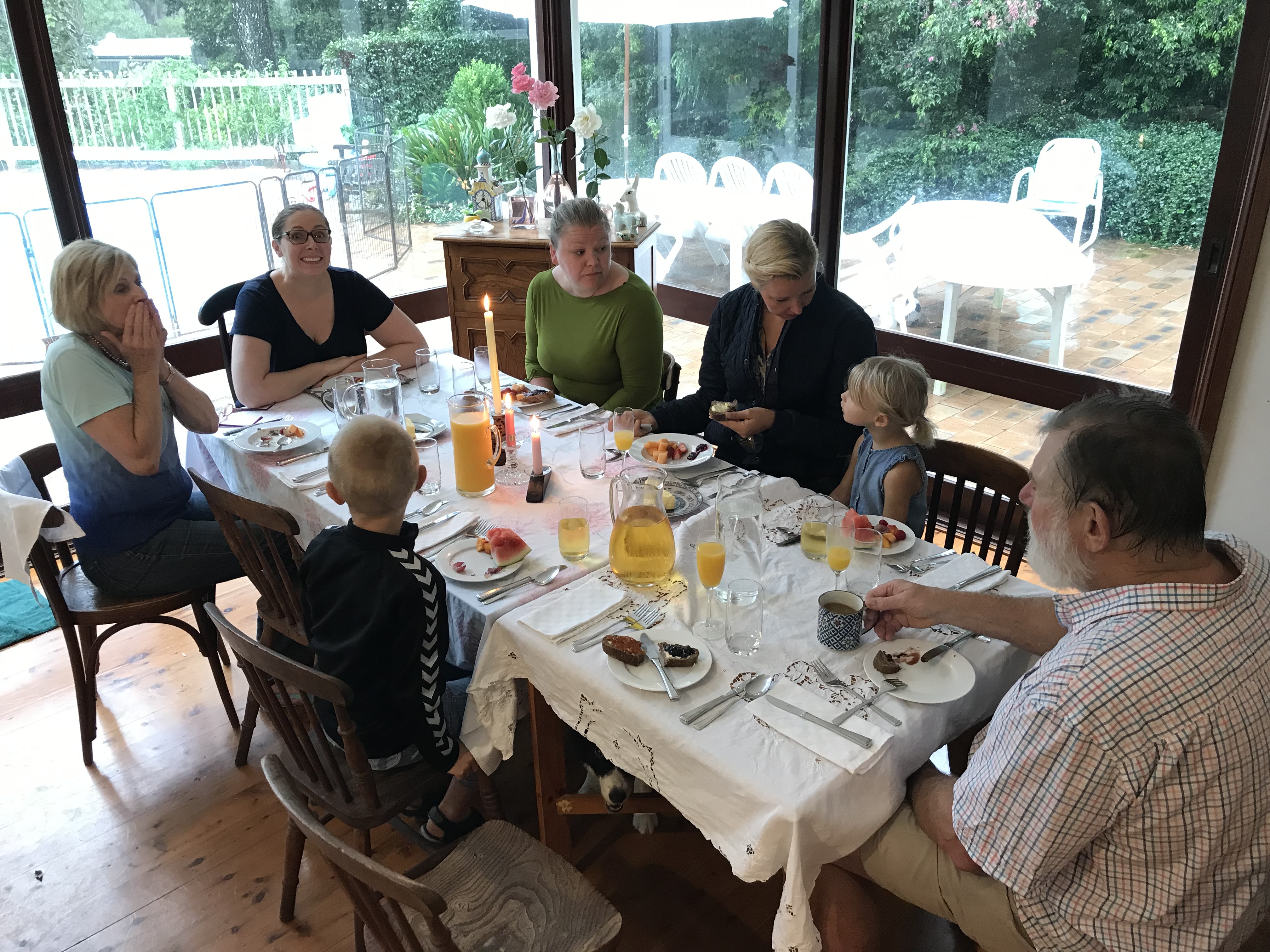 As a farewell, we visited the Hunt family twice in the last week. First for dinner on a Thursday evening, where Clare was in the pool with the kids and Darryl cooked a great four course dinner. And Saturday morning we were invited for brunch (with eggs Benedict and other delicious treats), which was at the same time a great "family reunion", as both Natacha and Rachel were home, and Tine was back from her trip. It was thus the whole Australian "family" with stand-in grandparents and aussie aunties.